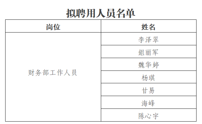 根據(jù)有關(guān)要求,現(xiàn)將集團(tuán)內(nèi)部招聘擬聘人員名單予以公示。如有異議,請于2025年5月26日至5月30日(工作日上午8:30-12:00、下午14:30-17:30)向集團(tuán)紀(jì)委、黨委組織部(人力資源部)當(dāng)面或以信函、電話方式反映。