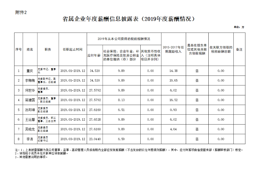 安徽演藝集團(tuán)有限責(zé)任公司領(lǐng)導(dǎo)班子成員2019年度薪酬信息披露