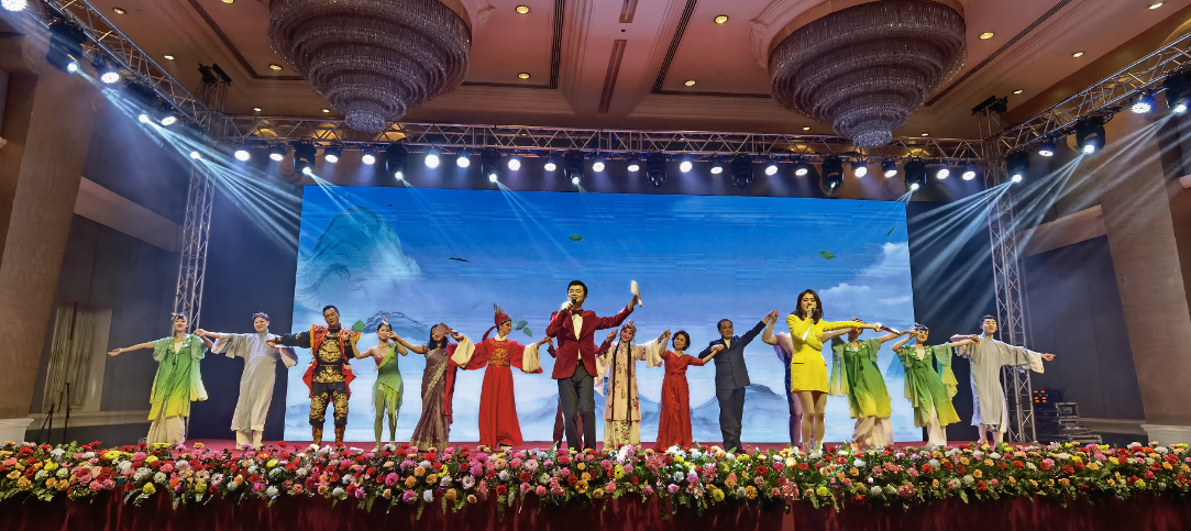 最后,歌舞表演《相親相愛(ài)》為演出活動(dòng)畫上了圓滿句號(hào)。在男女聲對(duì)唱中,全體演員集體上臺(tái)齊聲高歌,表達(dá)了國(guó)之交在于民相親,民相親在于心相通。