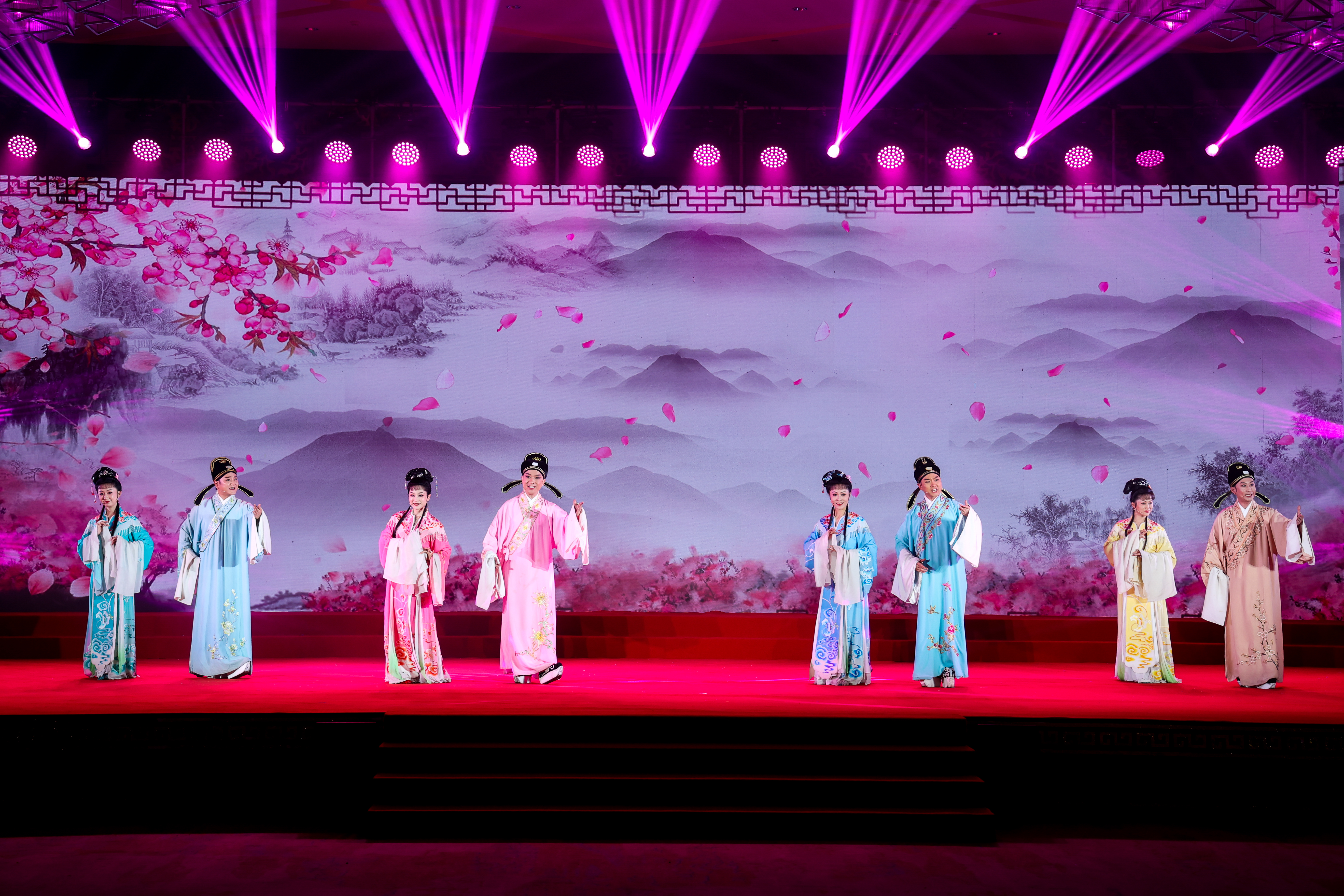 本次團(tuán)拜會由安徽演藝集團(tuán)下屬二級單位安徽省歌舞劇院牽頭負(fù)責(zé),該院國家一級導(dǎo)演薛偉擔(dān)任總導(dǎo)演。受領(lǐng)任務(wù)后,主創(chuàng)團(tuán)隊精心組織、認(rèn)真策劃,在省委宣傳部、省文旅廳的指導(dǎo)下,反復(fù)修改打磨演出方案,精益求精設(shè)計節(jié)目安排,匯集了近三年全省多個優(yōu)秀文藝作品,涵蓋歌曲、花鼓燈、戲曲、民樂等多種藝術(shù)類型,全省各地100多位演員共同參加表演,其中最大的60多歲,最小的只有6歲。