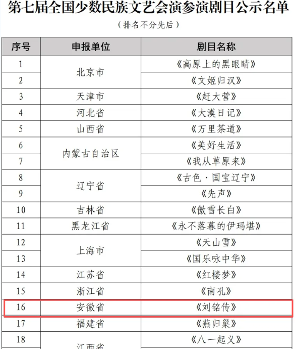 近日,國家民委公布了第七屆全國少數(shù)民族文藝會演參演劇目名單,省徽京劇院創(chuàng)排的大型徽劇《劉銘傳》成功入選。作為安徽省唯一入選劇目,該劇將代表安徽亮相這場國家級民族文化盛會,充分展現(xiàn)徽風(fēng)皖韻的獨(dú)特魅力。