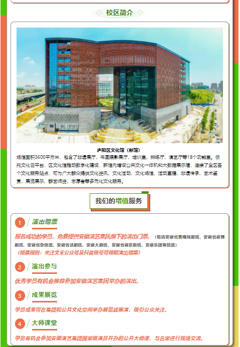安徽演藝集團(tuán)廬陽(yáng)夜校二期課程開始報(bào)名啦!